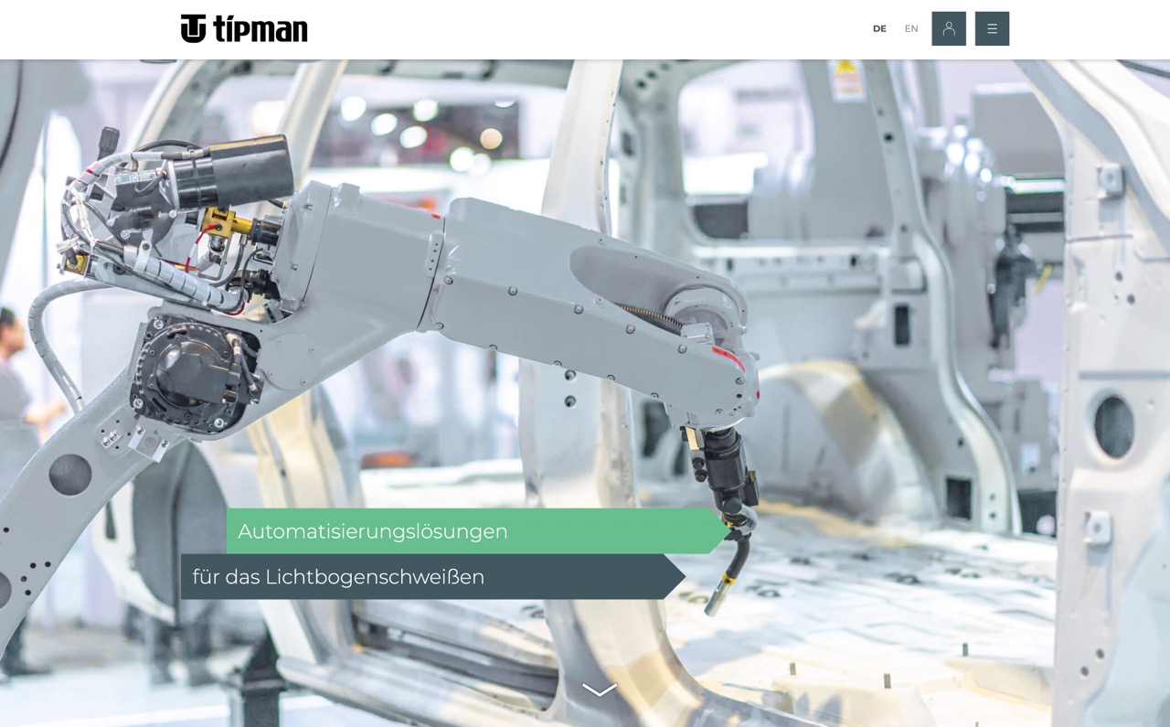 Complete technical implementation of the TYPO3 website for TIPMAN, a company specializing in peripherals for MIG/MAG arc welding. The website positions TIPMAN as a market leader in welding automation with a strong focus on solutions for the automotive industry. The provided web design was enhanced with motion design elements that strengthen the user experience and visually showcase TIPMAN's technical expertise.
