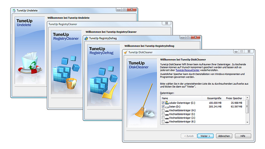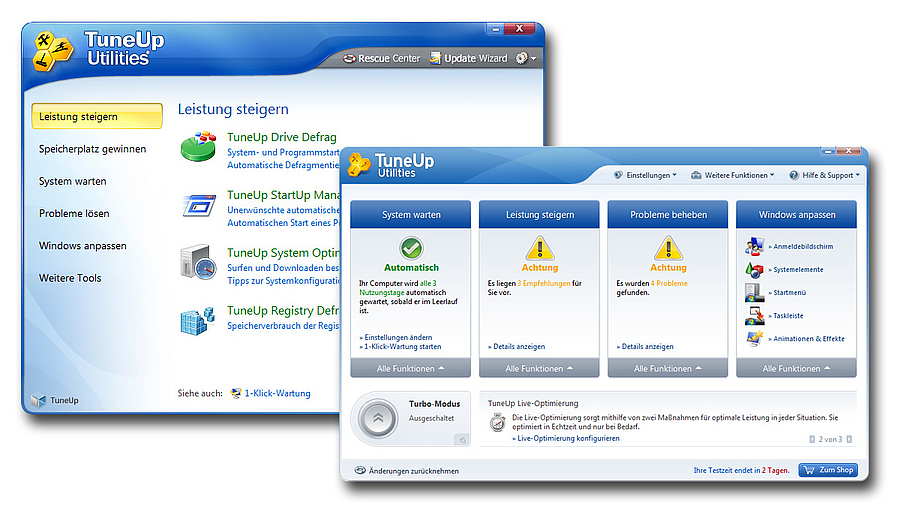 Erstellung hochwertiger User Interface Designs der Startoberflächen für mehrere Versionen von TuneUp Utilities.