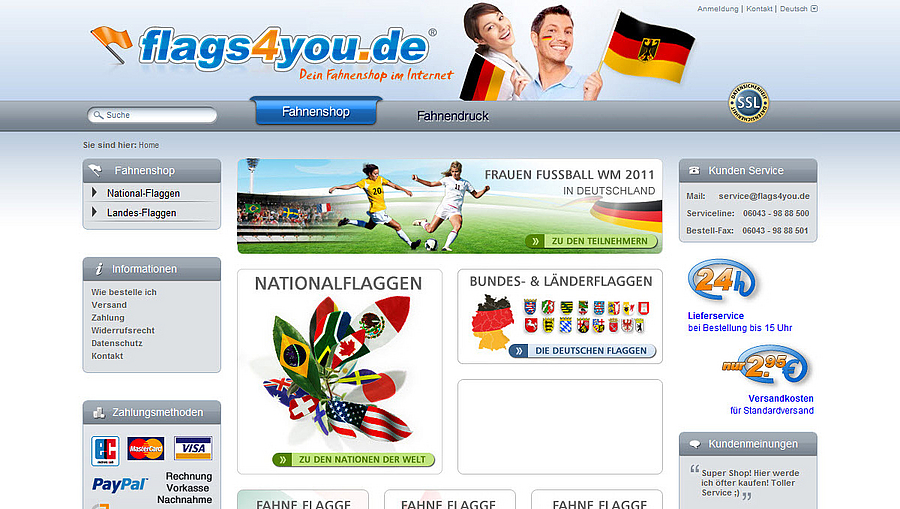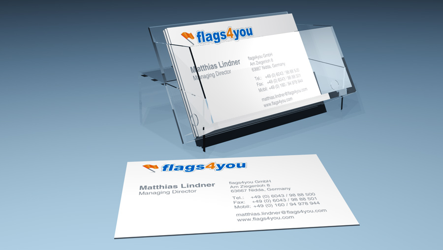 Creation and development of the corporate design for flags4you. The new design is also found on print products such as business cards and letterheads.