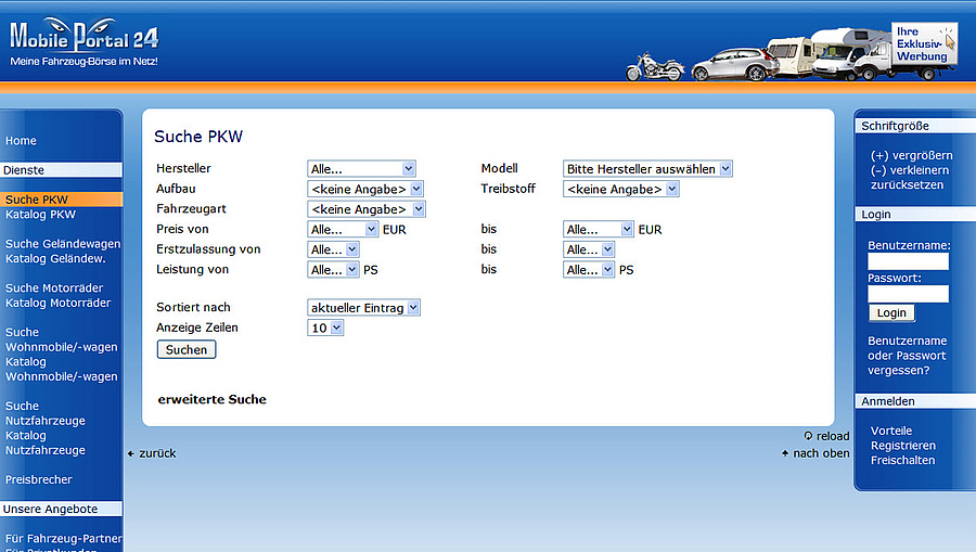 Konzeption und Gestaltung eines hochwertigen Webdesigns für ein Fahrzeug-Portal.