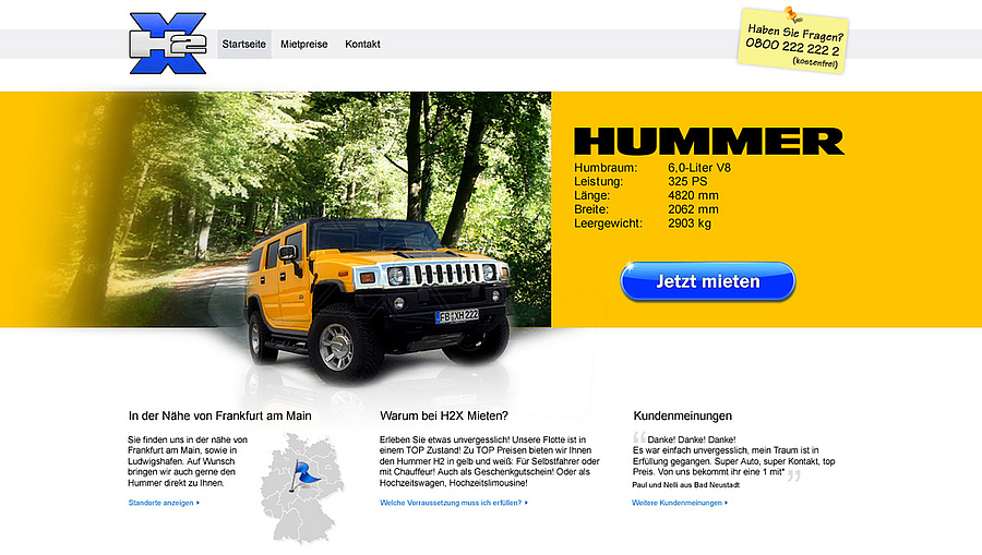 Concept and design of the website for the H2X car rental. Development of an internet booking engine for convenient and user‑friendly online processing.