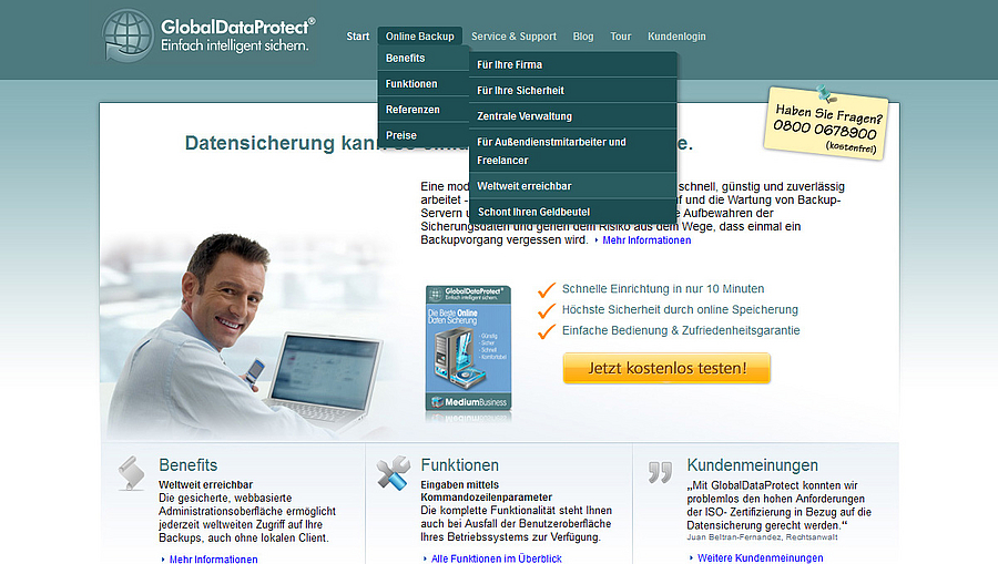 Improvement of the GlobalDataProtect website in terms of usability and efficiency, increasing conversion rates for trial downloads and orders.