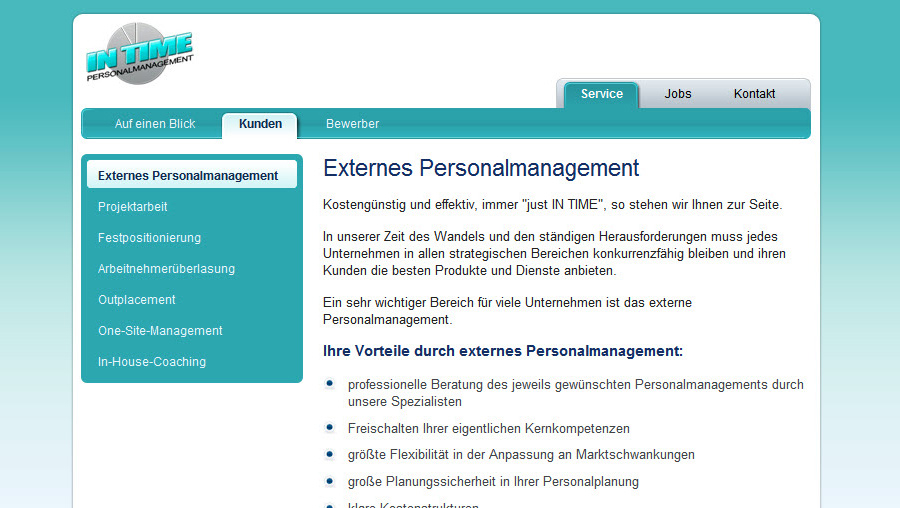 Konzeption und Gestaltung eines Webdesigns für externes Personalmanagement der IT-Branche.