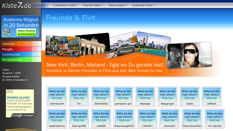Konzeption und Gestaltung einer Social Community. Freunde aller Welt können sich miteinander Verbinden und Fotos und Informationen teilen.