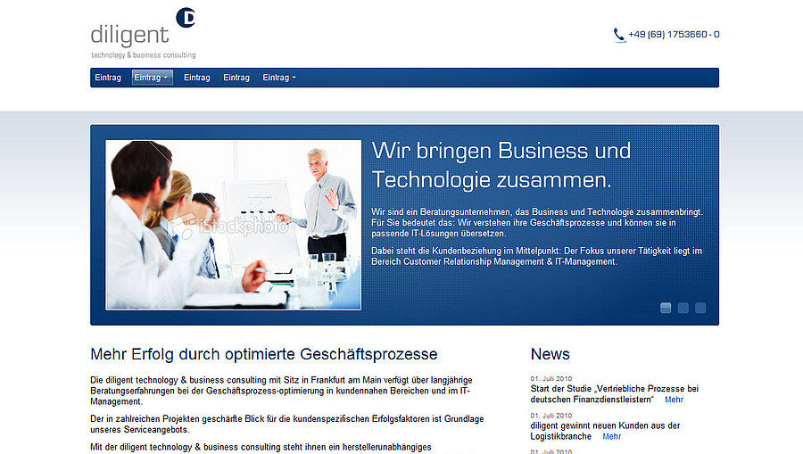 Konzeption und Gestaltung eines hochwertigen Webdesigns für unsere eigene Seite aus dem Jahre 2009 inkl. Content-Management-System Contao