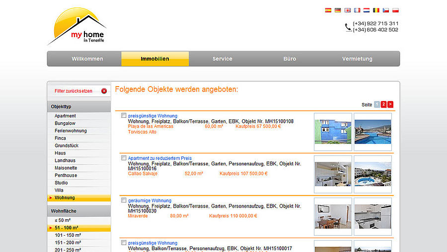 Konzeption und Gestaltung eines Immobilien-Portals für ein Immobilienbüro auf Teneriffa. Eine erweiterte Filterfunktion lässt Interessenten schnell und einfach die ganz eigene Traum-Immobilie finden. Das Portal wurde mittels TYPO3 realisiert.