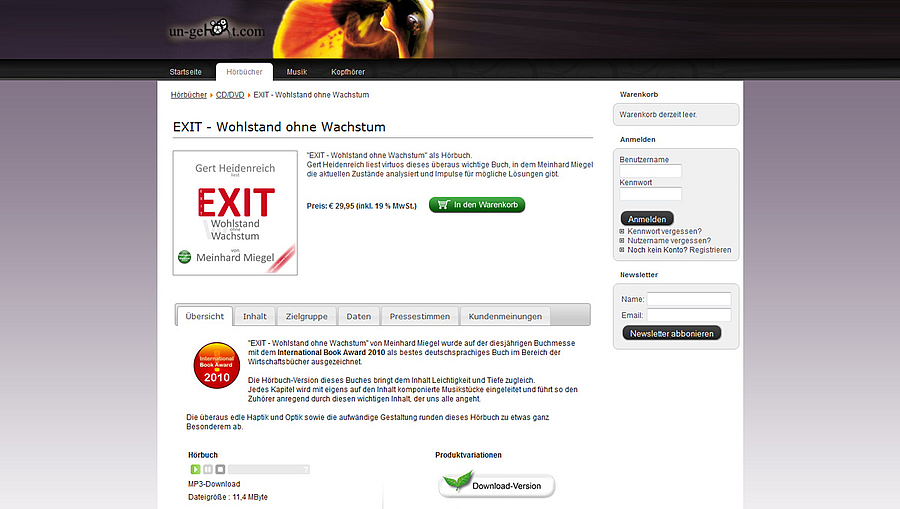 Kreation des Corporate Designs und Entwicklung des Online-Shops. Das neue Design findet man auch auf Printprodukten wie z. B. dem Paperbook im Einzelhandel sowie auf Visitenkarten und Briefbögen.